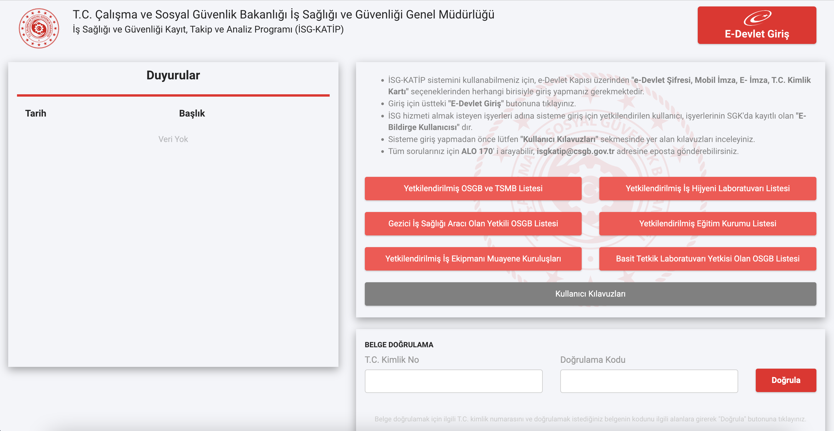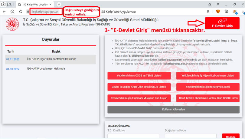 1. https://isgkatip.csgb.gov.tr/ linki üzerinden İSGKatip sistemine giriş yapılır.