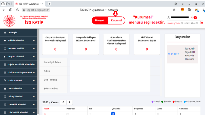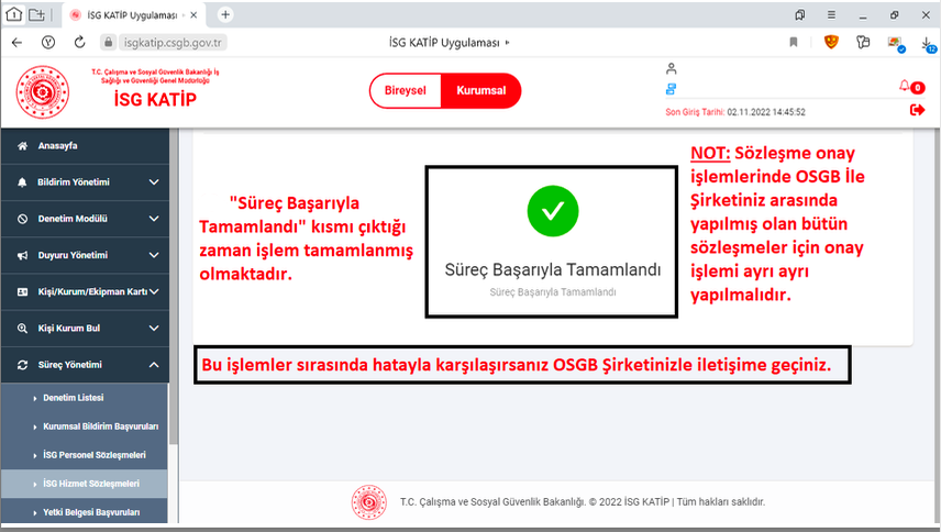 Kasım (2022) ayı başında İSGKatip sistemi yenilenerek hizmete açılmıştır. Yeni İSGKatip sisteminde İSG profesyonellerinin onay süreçleri değişmiştir.